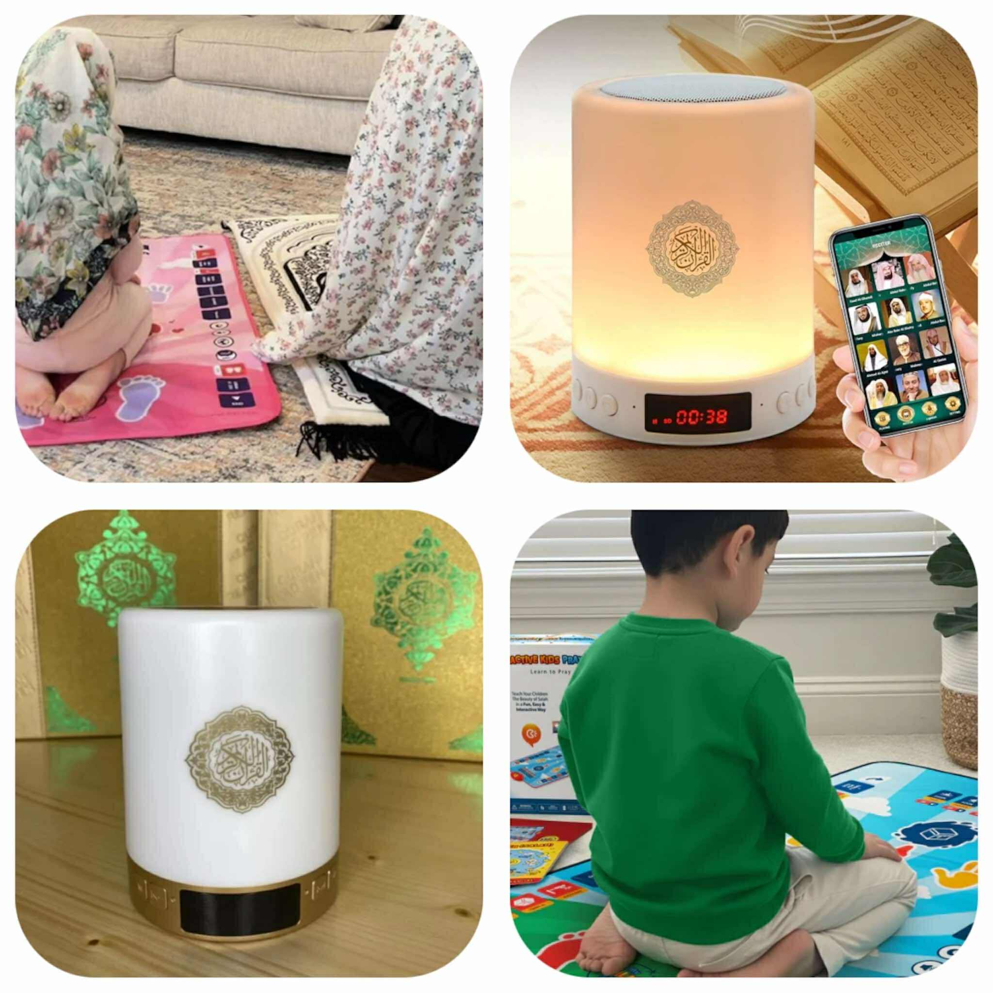 Veilleuse coranique avec enceinte intégrée, diffusant de belles récitations du Coran accompagnées d’une lumière douce et apaisante. Idéale pour le sommeil, la méditation et l’apprentissage spirituel des enfants et des adultes, elle crée une ambiance sereine, rassurante et propice au recueillement quotidien, à la maison ou avant le coucher.